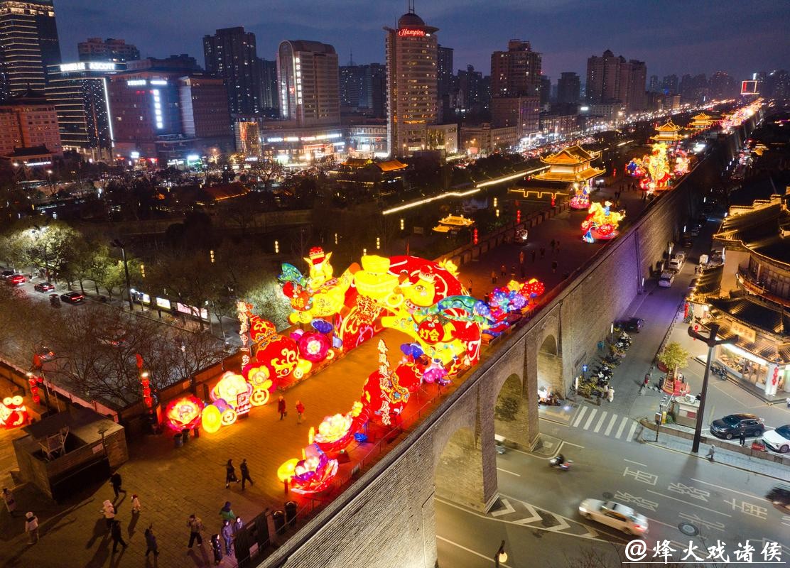 西安城墙 流光溢彩迎马年 当古老的城砖在夜色中被灯光一点点点亮 西安城墙便从历史的深处缓缓走来 和喧腾喜庆的马年不期而遇 在这一刻 时间仿佛被按下了慢放键 人们穿梭在城门与箭楼之间 既是在迎接一